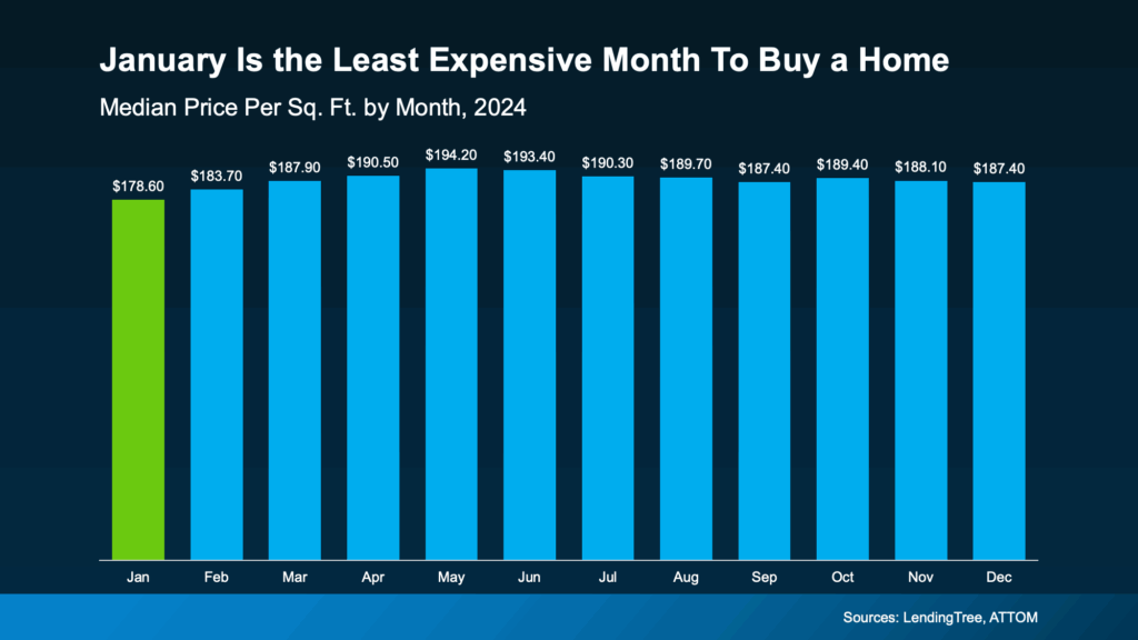 Lending Tree says January is the least expensive month to buy a home. And there’s something to that. January has historically offered one of the lowest price-per-square-foot points of the entire year. But the spring? That’s when demand (and prices) usually peak. And that’s not speculation – it’s a well-known trend based on years of market data.