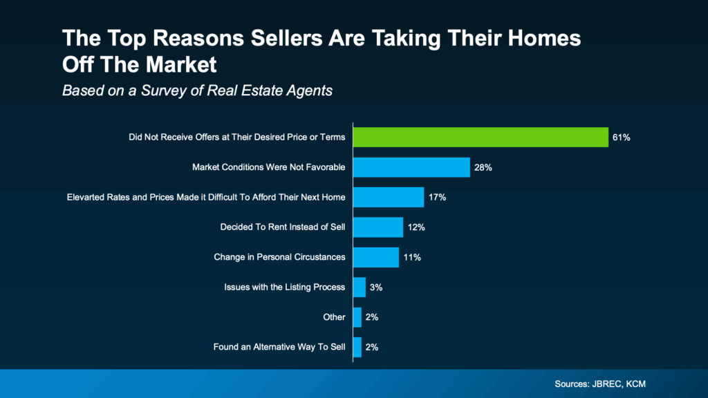 And the top reasons for that? According to the agents, homeowners didn’t get any offers they felt were fair. The survey from JBREC and KCM explains it like this: